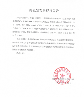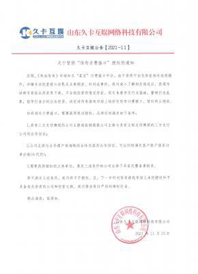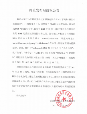 202112-29我司于2021年9月20日授权域名(主域名:www.jinsf.com)在中国大陆地区范围内提供运营、管理、推广《The Legend Of Mi...