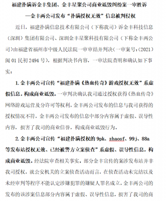 202202-15近日,YY易游m6米乐信息技术有限公司(下称我司)诉金丰科技信息(深圳)集团有限公司、深圳金丰星聚科技有限公司(下称金丰两公司)由福建省福州市中级人民法院一审审结并判决...